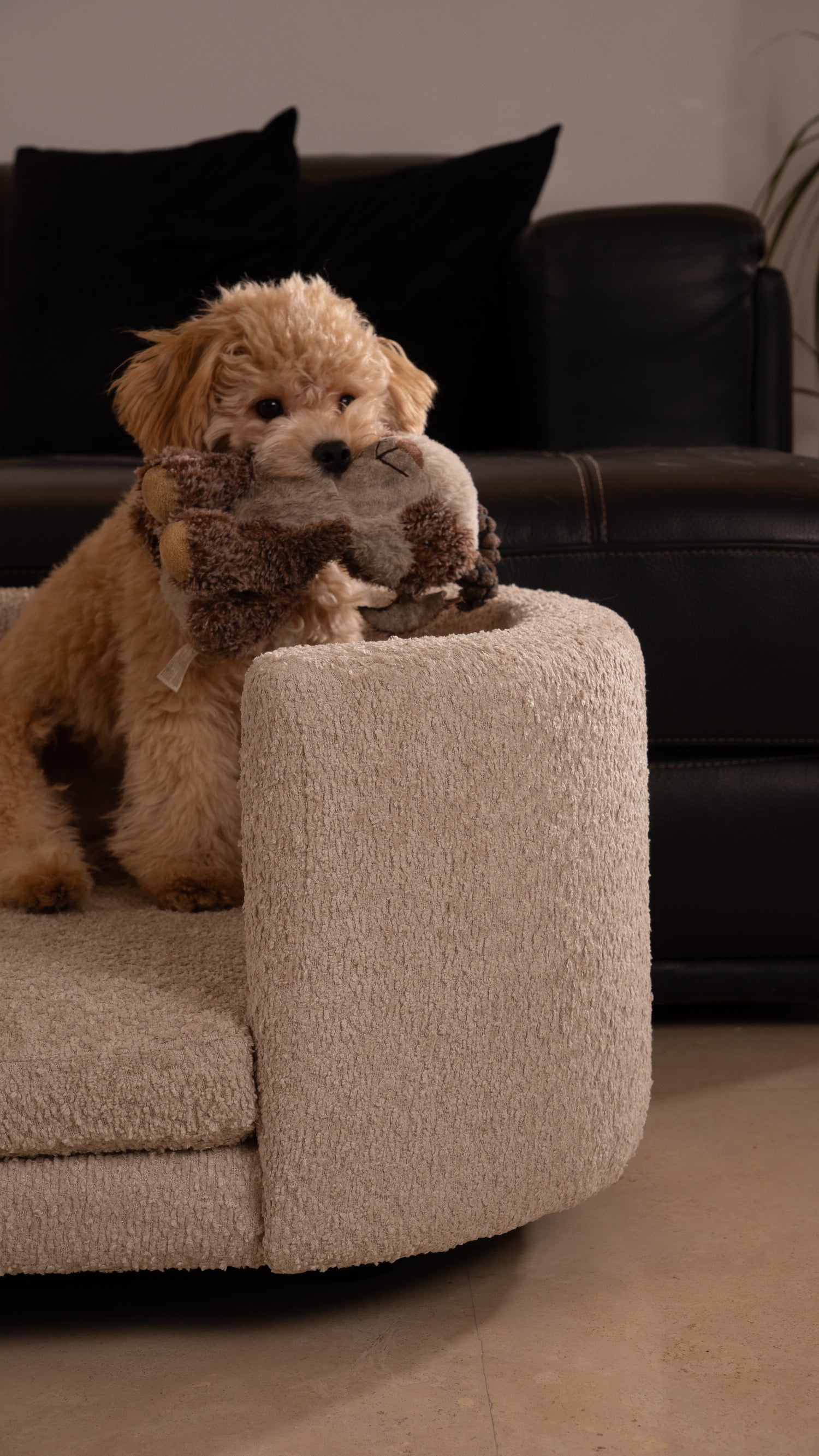 "תראו אותי – כלב של פעם הופך למודל של סטייל. מיטת החלומות שלכם היא המציאות שלי!"🐾